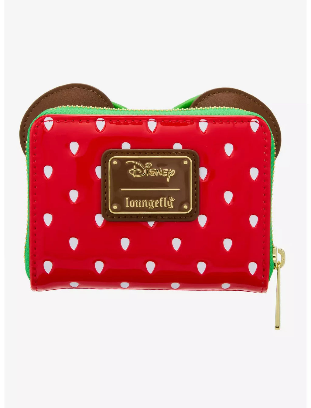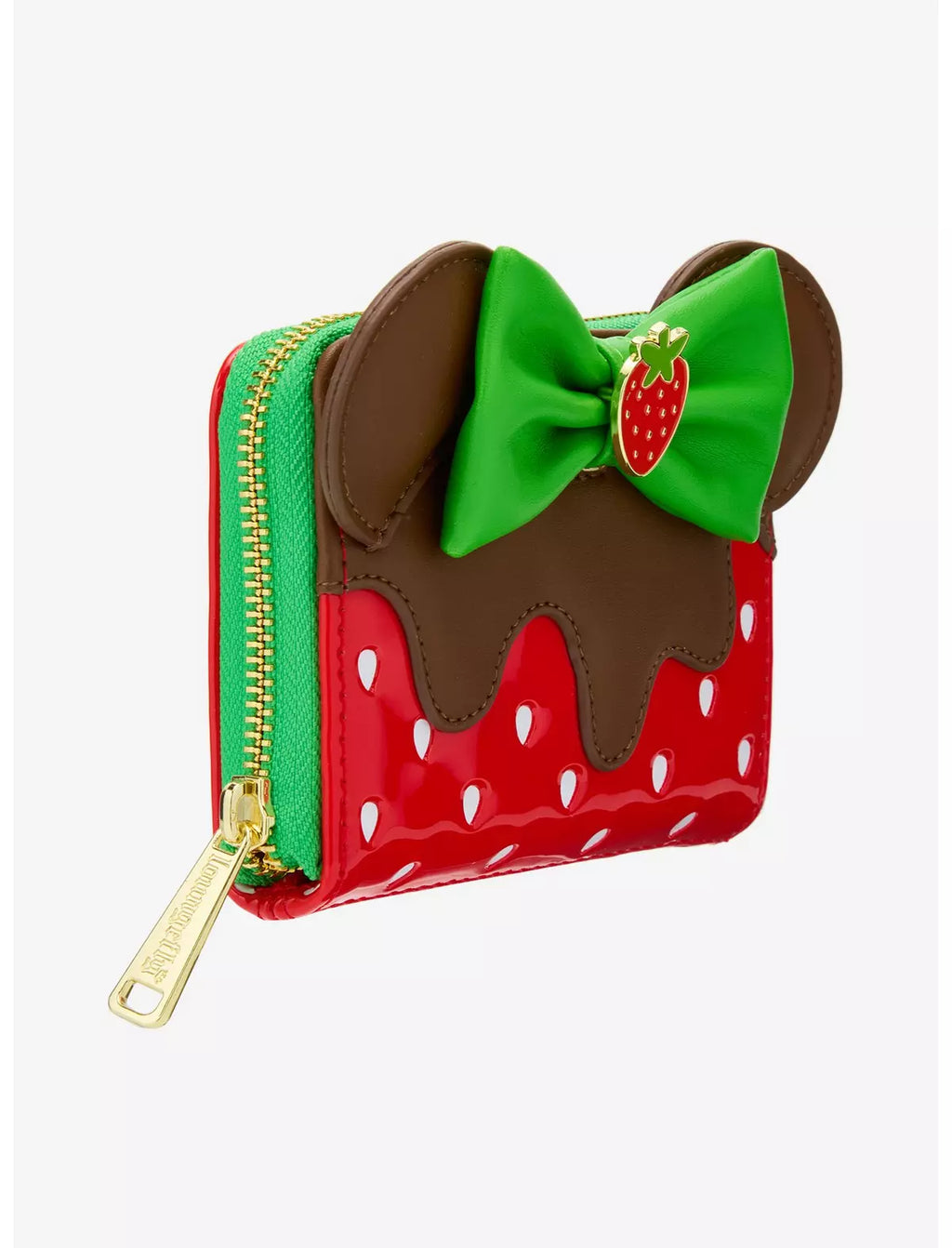 Bring a dash of sweetness to your Disney Parks ensemble with this figural crossbody bag! Styled like a chocolate-dipped strawberry, the shiny, seed-embossed design features chocolate drip appliqués, Minnie Mouse ears, and a faux leather bow adorned with an enamel strawberry charm. Complete with an adjustable crossbody strap and a delicious chocolate scent, it's a treat for Disney fans everywhere.