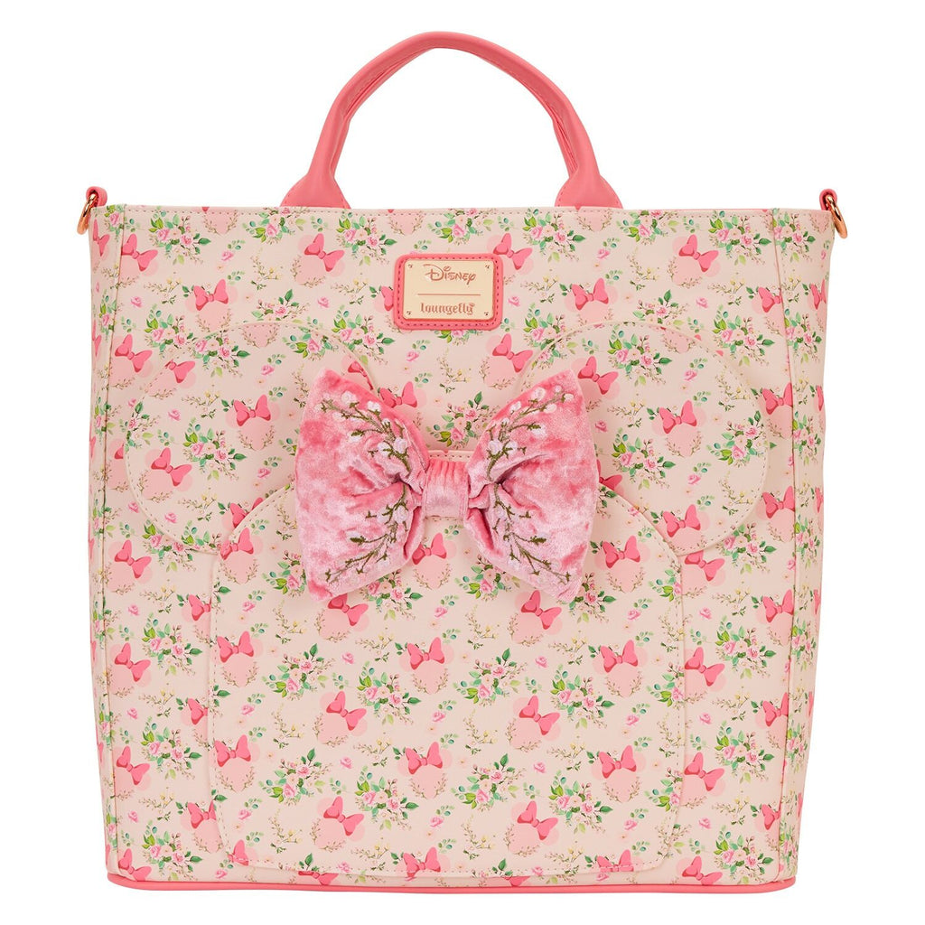 This stylish piece features an allover print of Disney’s Minnie Mouse silhouette surrounded by floral designs. On the front, appliqué Minnie Mouse ears frame a soft velvet bow at the center. The design easily transitions from a backpack to a tote bag, letting you switch up your look anytime you like!