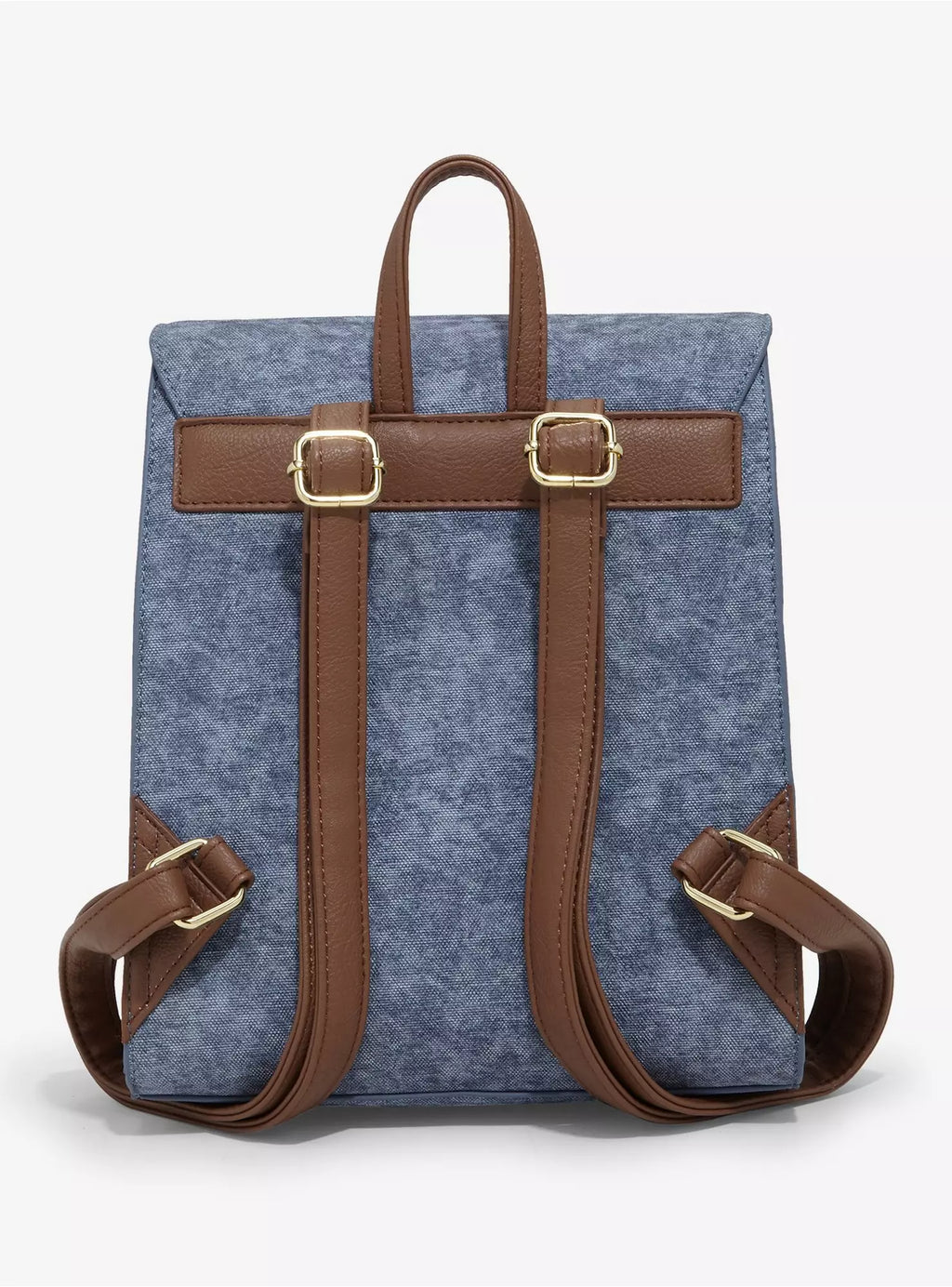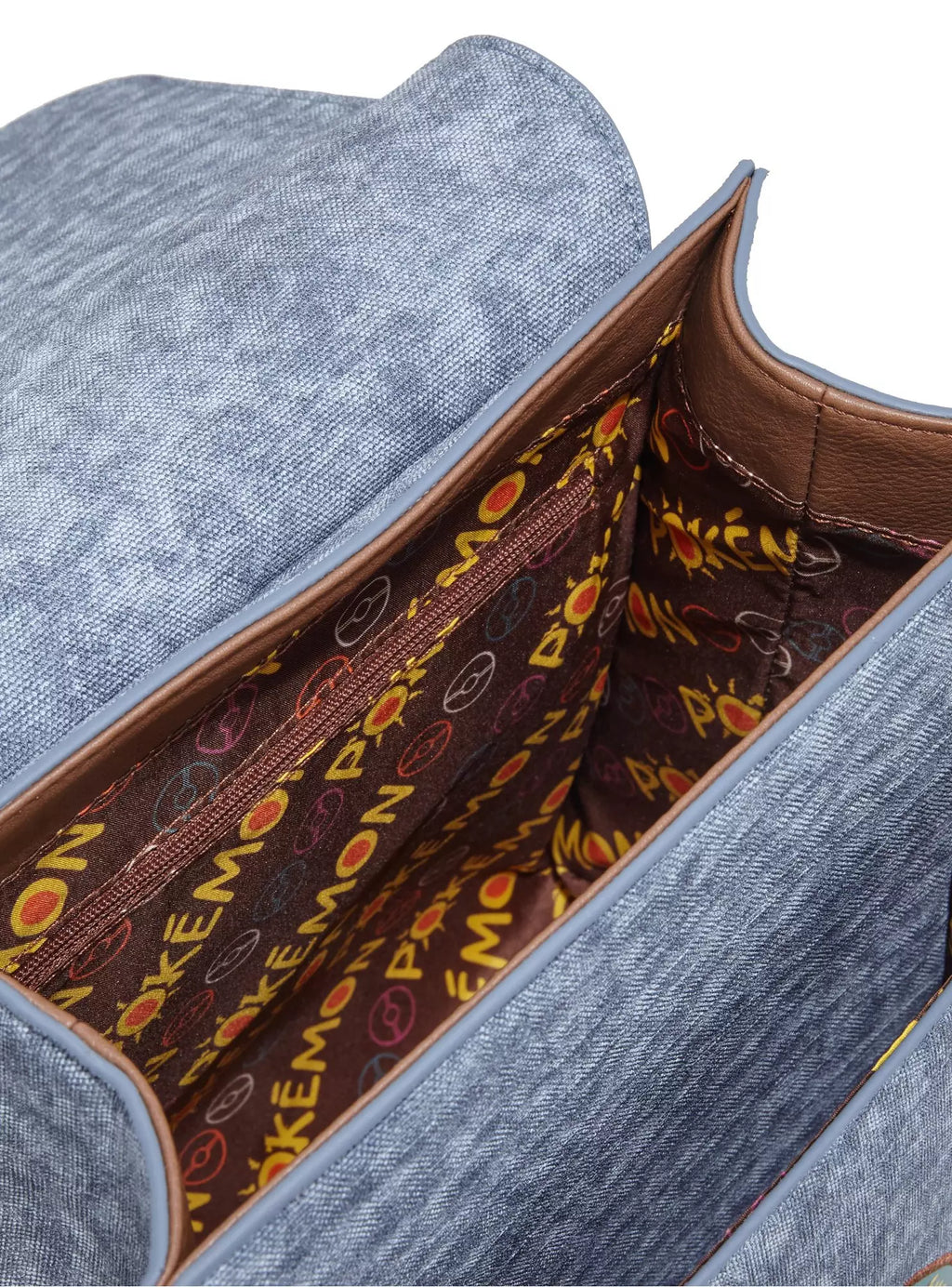 Get ready to hunt for Pokémon with this mini backpack! Featuring patches of different Pokémon on a faux denim body, this backpack includes a magnetic closure and buckle details, this backpack includes adjustable straps.
