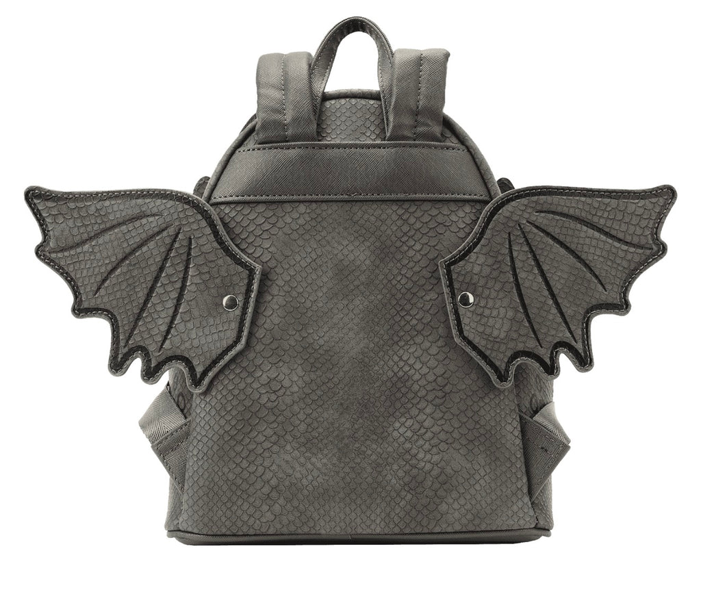 Welcome to Berk! Here, fierce dragons have become loyal companions to the Vikings who call this place home. Eager to join your adventures, this fierce Night Fury takes shape as the Loungefly How to Train Your Dragon Toothless Cosplay Mini Backpack. On the front, Toothless gives a friendly grin as he hides his teeth. Debossed scales give texture to the design, and his arms appear on the zipper pocket below. Prepare for takeoff as the dragon’s moveable wings flap back and forth on the bag’s back! This high-flying accessory is perfect for exploring the unknown and is sure to keep your belongings safe wherever you go.